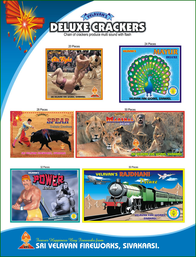 Some varieties of Sri Velavan Fireworks Multi Deluxe Crackers are