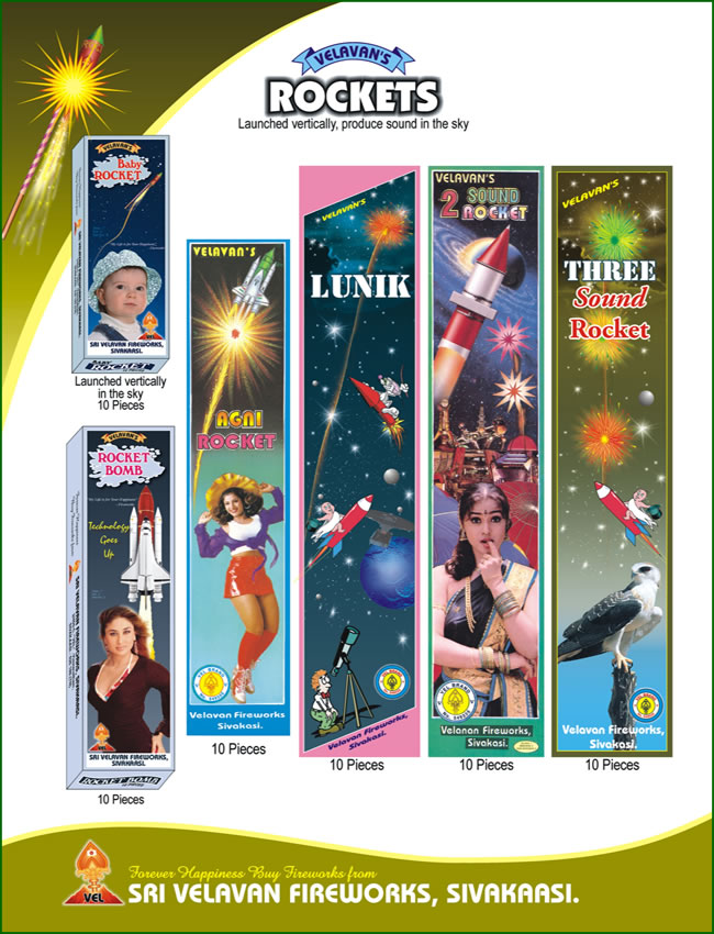 Rockets are the oldest form of fireworks and the most simplistic. We manufacture rockets with the help of colors, flashes and other chemicals with special pyrotechnic properties added to gunpowder.