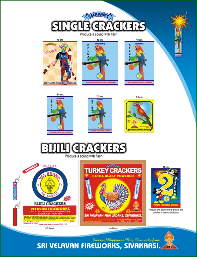 We manufacture single crackers of high grade. The bijili crackers that we make are of exceptional designs and are made by keeping in notice with the international standard of safety measures. Single cracker & bijili produce a sound with flash.